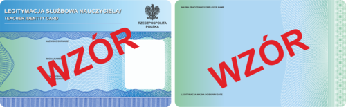 Legitymacja służbowa nauczyciela potwierdza zatrudnienie na stanowisku nauczyciela oraz uprawnia do ulgi przy przejazdach środkami publicznego transportu kolejowego i autobusowego. Nie ma obowiązku jej posiadania. Jest wydawana na wniosek nauczyciela. Wykonuje się ją z wielowarstwowej karty laminowanej, na której zamieszcza się: imiona i nazwisko nauczyciela oraz jego zdjęcie, nazwę pracodawcy, datę ważności. Na legitymacji służbowej nauczyciela nie zamieszcza się jakichkolwiek dodatkowych informacji, zarówno tych dotyczących uprawnień, jak i obowiązków wynikających z innych przepisów.