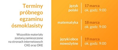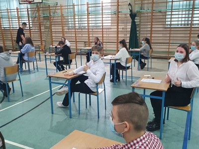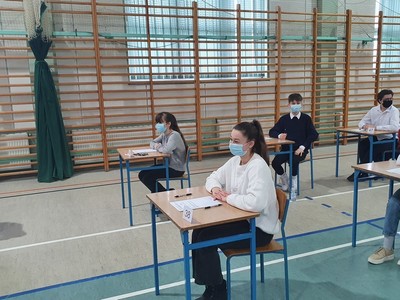 Od środy 17 marca 2021 r., przez kolejne trzy dni, 48 uczniów klas 8 naszej szkoły wzięło udział w próbnym egzaminie, podczas którego rozwiązywało testy diagnostyczne, przygotowane przez ekspertów Centralnej Komisji Egzaminacyjnej. Pierwszego dnia był to język polski, a w kolejnych matematyka i język obcy nowożytny (angielski lub niemiecki). Głównym celem próby było zapoznanie ósmoklasistów z procedurą przeprowadzenia egzaminów, których termin został ustalony na koniec maja.