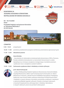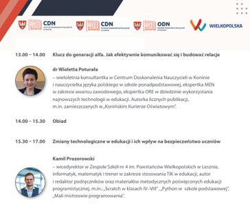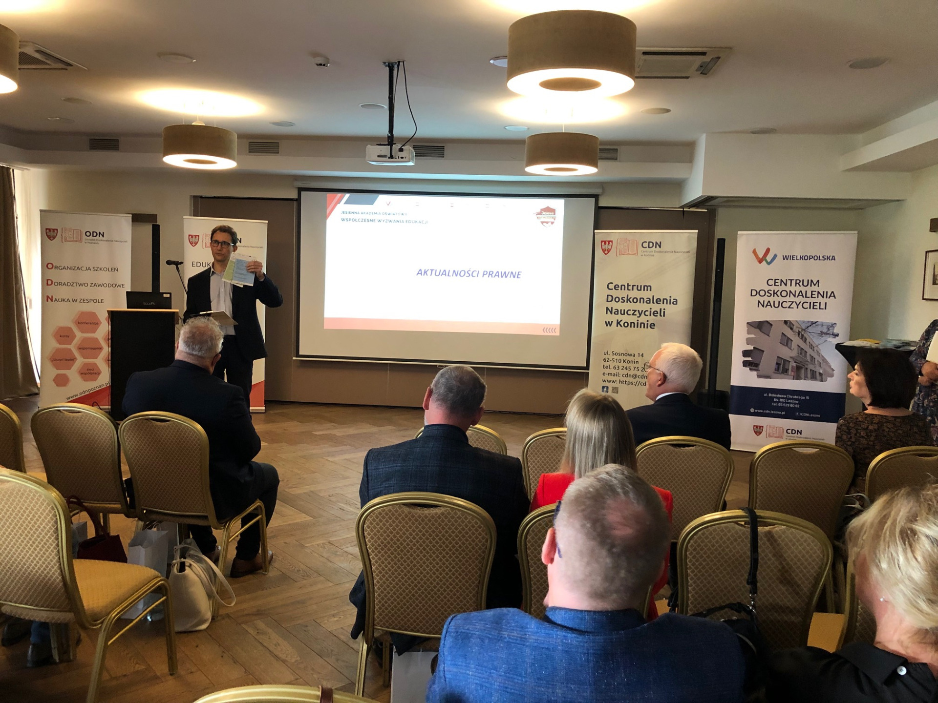 W dniach 02-03.10.2025 r. w Kórniku odbyło się szkolenie zorganizowane przez Ośrodek Doskonalenia Nauczycieli w Poznaniu przy współpracy z Centrum Doskonalenia Nauczycieli w Koninie i Lesznie pt. „Jesienna Akademia Oświatowa. Współczesne wyzwania edukacji”, w którym uczestniczyli dyrektorzy naszej szkoły. Konferencję otworzył zastępca dyrektora poznańskiego ODN Tadeusz Nowik oraz kierownik konińskiego CDN Jarosław Jankowski. Do uczestników szkolenia dołączył również wielkopolski kurator oświaty Igor Bykowski. Całą konferencję koordynowała Jolanta Czereśniowska – konsultant ds. doskonalenia oświatowej kadry kierowniczej ODN Poznań. W programie poruszano następujące tematy: aktualności prawne, zachowania ryzykowne dzieci i młodzieży w świecie cyfrowym, klucz do generacji alfa – jak efektywnie komunikować się i budować relacje oraz zmiany technologiczne w edukacji i ich wpływ na bezpieczeństwo uczniów. Wykłady i prelekcje prowadzili: prof. Jakub Andrzejczak, Wojciech Dziuda, Anna Kicińska, Marta Klamecka-Muczek, Karolina Liszka, dr Wioletta Poturała i Kamil Prozorowski. Kolejnym ciekawym punktem szkolenia była wizyta studyjna w Szkole Podstawowej im. Sprawiedliwych wśród Narodów Świata w Kamionkach, gdzie dyrekcja podzieliła się swoimi doświadczeniami we wdrażaniu oceniania kształtującego.