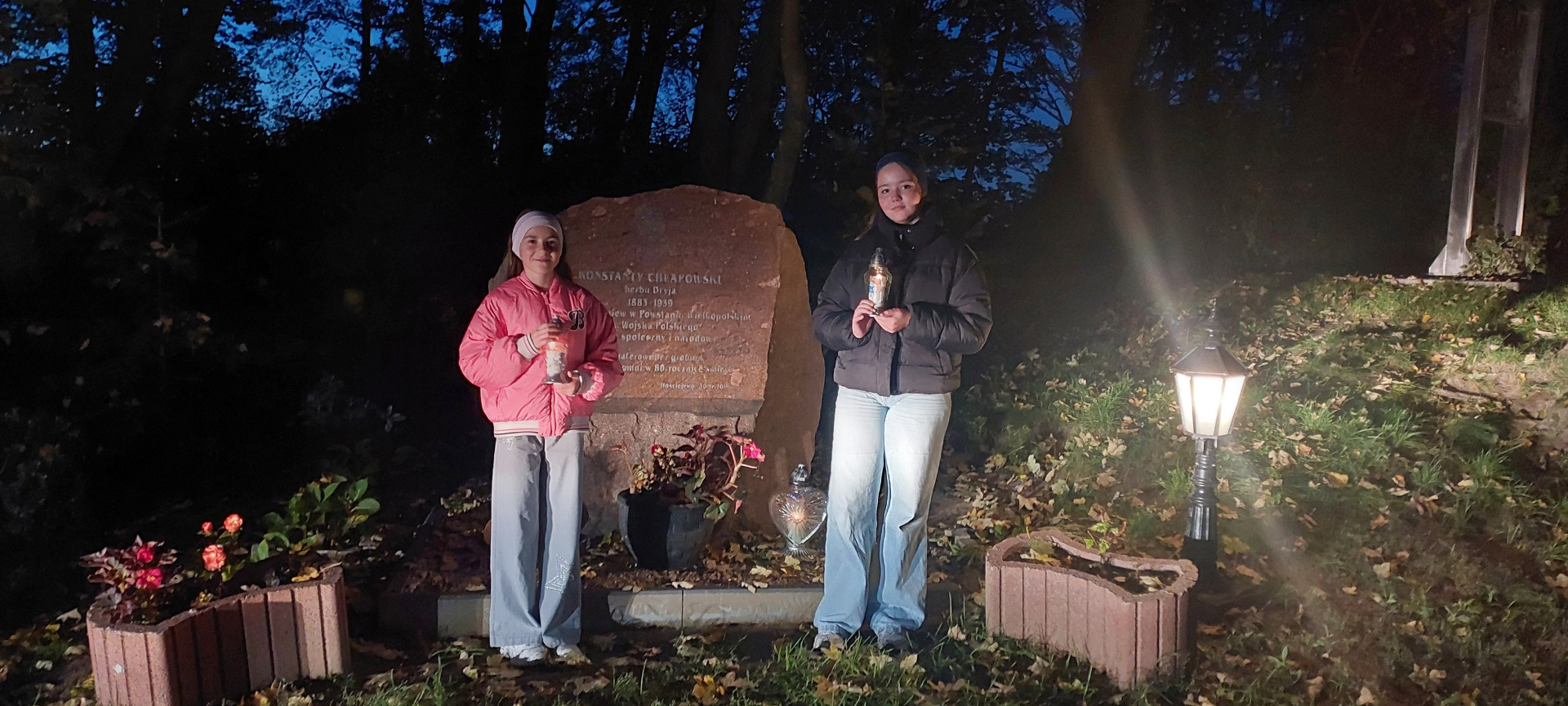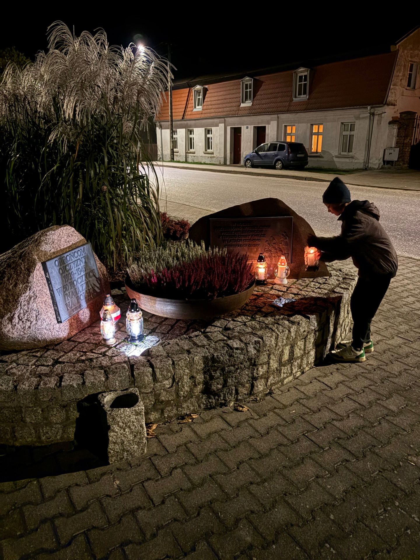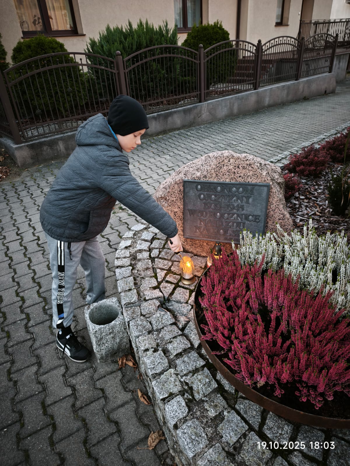 Jak co roku, nasza społeczność szkolna dołączyła do ogólnopolskiej akcji medialno-edukacyjnej IPN "Zapal Znicz Pamięci", by oddać hołd ofiarom niemieckich zbrodni dokonanych w ramach operacji „Tannenberg”, „Akcji Inteligencja” oraz „politycznego oczyszczania gruntu” w 1939 r. W trzecią niedzielę października, a dokładnie 19 października 2025 r., wspominaliśmy tych, którzy jako pierwsi zostali poddani eksterminacji po agresji III Rzeszy Niemieckiej na Polskę. To oni zapłacili najwyższą cenę. Zapaliliśmy znicze przy pomniku bohaterów z lat 1939-45 i wywiezionych z terenów gminy Kwilcz, który znajduje się na przeciwko kościoła oraz przy głazie w Mościejewie - miejscu poświęconemu Konstantemu Chłapowskiemu.