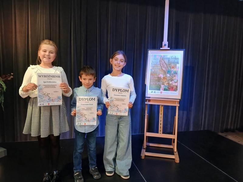 Gminny Konkurs Recytatorski w Kwileckim CKiE. Uczniowie naszej szkoły uczestniczyli w Gminnym Konkursie Recytatorskim pod naszą opieką. Zuzanna Osińska, Franciszek Kruk otrzymali dyplom, Iga Dobkowicz wyróżnienie.