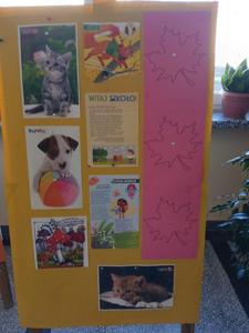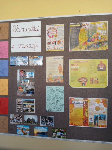 4) Gazetki ścienne: „Pamiątki z wakacji”. „Jesień”, „Zapraszamy do biblioteki” „Dzień Edukacji Narodowej” - przygotowywane wraz z aktywem bibliotecznym: Monika Grzelak, Laura Lisek, Zofia Wacław, Kornelia Lemańska, Maja Sadek, Lena Ostrycharz, Rozalia Małecka, Weronika Michalska, Wiktoria Bierka.