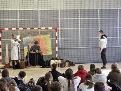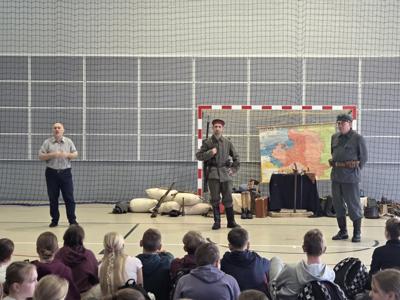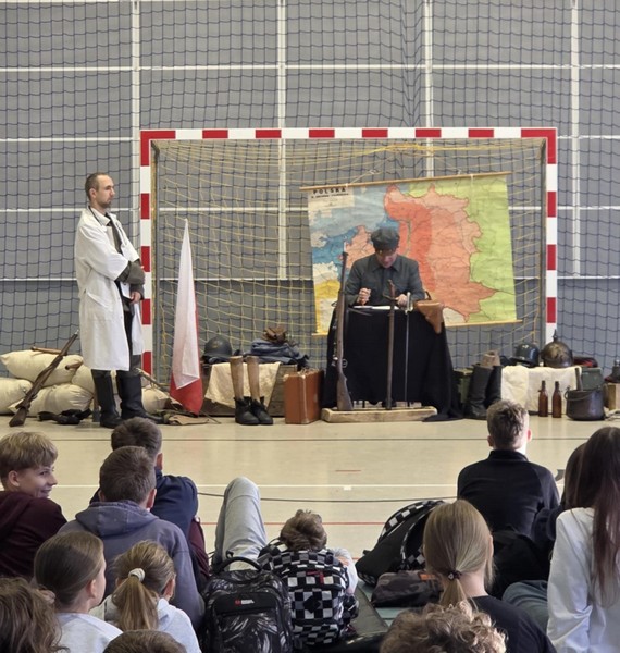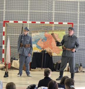 29 października 2025 r. przeżyliśmy niesamowitą „żywą lekcję historii”. Dzięki prezentacji Agencji Widowisk Historycznych Arkona, nasi uczniowie odbyli fascynującą podróż w czasie. Od utraty niepodległości na 123 lata, do radosnego momentu odzyskania wolności w 1918 r. – przeszliśmy przez burzliwe czasy powstań narodowych i Wielkiej Wojny. Opowieści i autentyczne rekwizyty sprawiły, że historia ożyła na naszych oczach. Ta nietypowa lekcja wprowadziła nas w wyjątkowy nastrój przed zbliżającym się świętowaniem 107. rocznicy odzyskania niepodległości!
