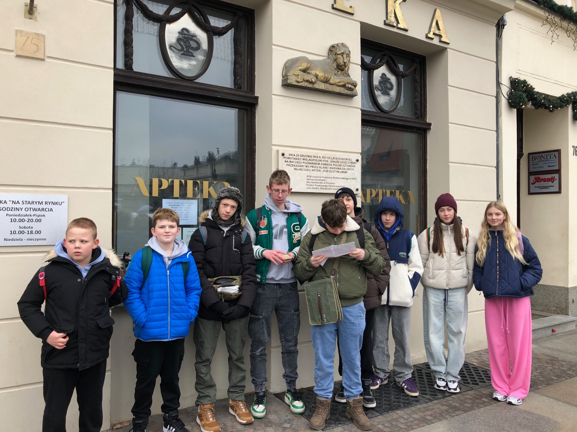 W niedzielę 14 grudnia 2025 r. uczniowie SP Kwilcz uczestniczyli w wycieczce do Poznania, w ramach realizacji projektu pt. „PyrOFFensive & PyroTrip – wyjazd edukacyjno-integracyjny dla młodzieży, która chce poznawać Wielkopolskę”, który mógł się odbyć dzięki grantowi z Wielkopolskiego Funduszu Młodzieżowego K.A.W.A. Organiczna – edycja 2. Wniosek o grant złożyła grupa młodzieżowych radnych. Z wyjazdu skorzystali również uczniowie szkoły z Lubosza oraz członkowie Grupy Turystycznej Manowce Lubosz, która wraz ze Stowarzyszeniem Nasz Kwilcz była współorganizatorem wycieczki. Dzień rozpoczęliśmy od warsztatów w Muzeum Pyry i Muzeum Dawnego Poznania, gdzie dowiedzieliśmy się skąd pochodzą ziemniaki i jakie były legendarne początki grodu Przemysła. Dokładnie w południe podziwialiśmy poznańskie koziołki na wieży ratuszowej. Następnie, podzieleni na 5 pododdziałów, uczestniczyliśmy w grze miejskiej pt. Śladami Powstania Wielkopolskiego. Po drodze odwiedziliśmy Jarmark Bożonarodzeniowy na Placu Wolności. Spacer po stolicy Wielkopolski zakończyliśmy w Starym Browarze, gdzie zjedliśmy posiłek i w kinie obejrzeliśmy film pt. „Zwierzogród 2”. Uczestnikami wyjazdu opiekowali się – Daniel Kozubowski oraz Monika i Marcin Lehmann.